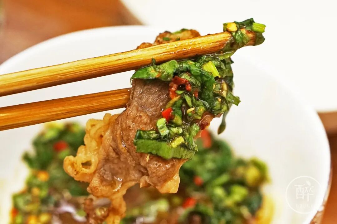 两种香菜切碎之后,裹起肉一起吃,满嘴都是清香不涩嘴的味道。