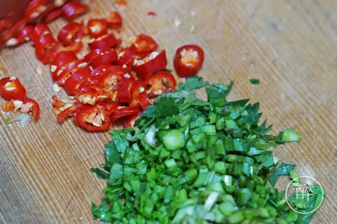 加酱油、白糖和海椒面,最正宗的是加糊辣椒,我们用的单山也好吃!(因为单山本身就有点咸,所以不额外加盐了)