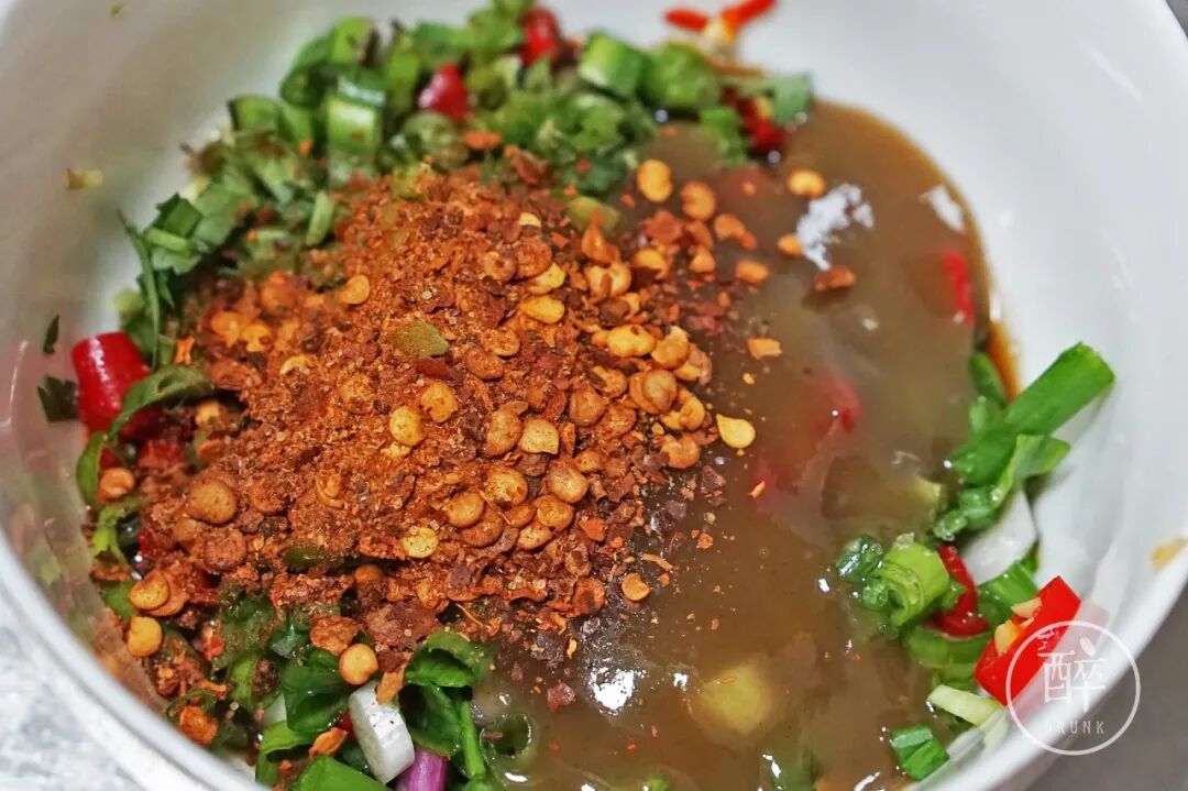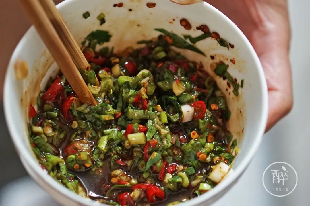 最后加入腌菜膏,伙匀,一碗不见辣椒的湿蘸水就做好了。