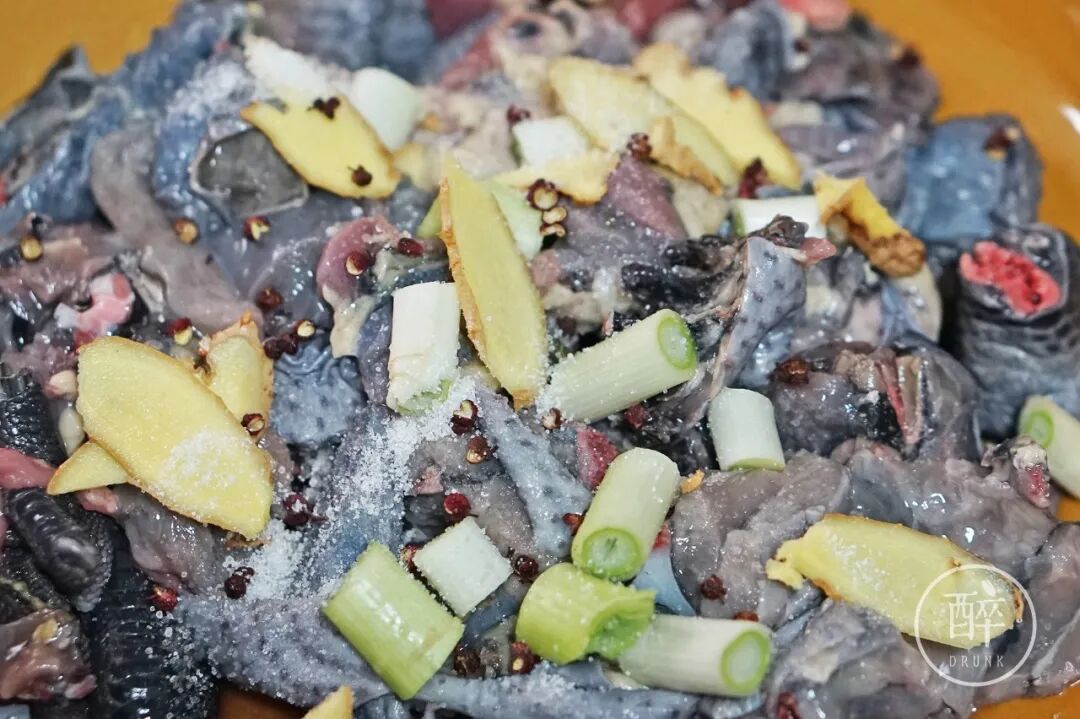 宰好的鸡洗干净之后加点点盐,用姜葱料酒三角套码味,15-20分钟差不多。