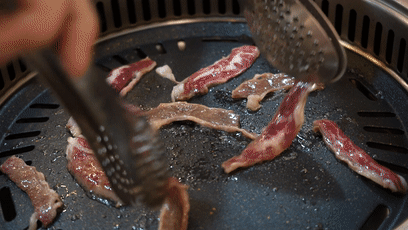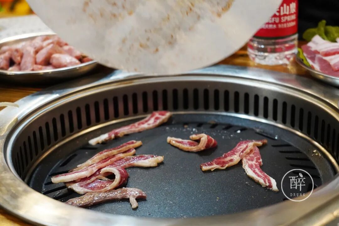 是新鲜肉冻过后再切的,烤的时候边缘和下面会出一些汁水。