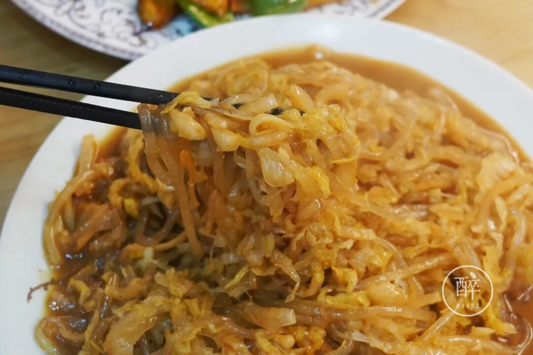这个酸菜粉条,是酱油主味的,加上酸菜的发酵酸味,怎么那么鲜爽下饭!