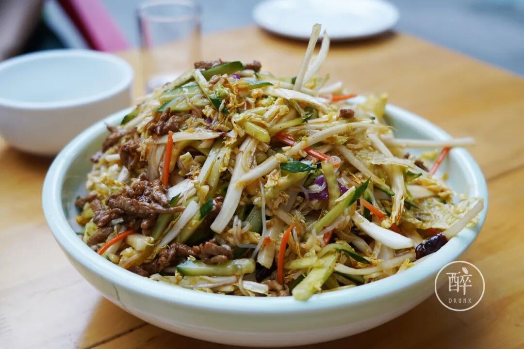 吃的这个拌菜,肉丝包菜黄瓜粉丝……太清爽啦!中式沙拉我可以吃一盆(配饭…)!