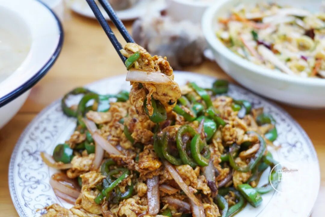 还有个酱炒青椒圈和鸡蛋,不说了都在饭里了!
