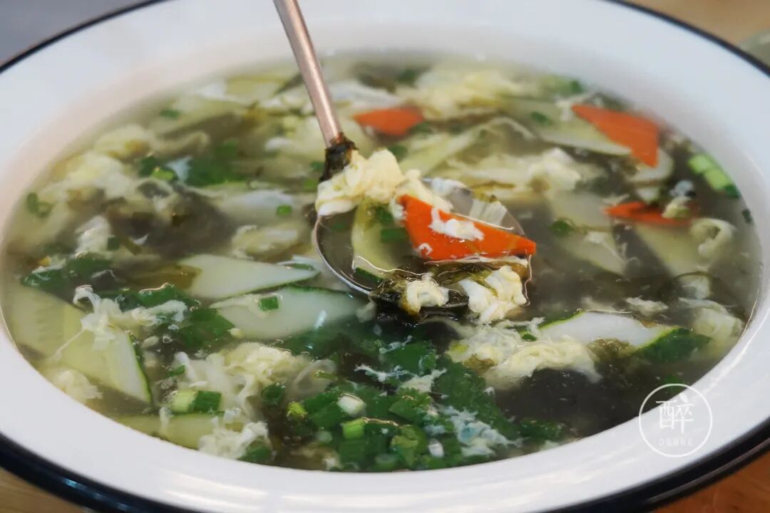 第一次老板还送了个汤,紫菜蛋花黄瓜胡萝卜,喝起舒舒服服的。