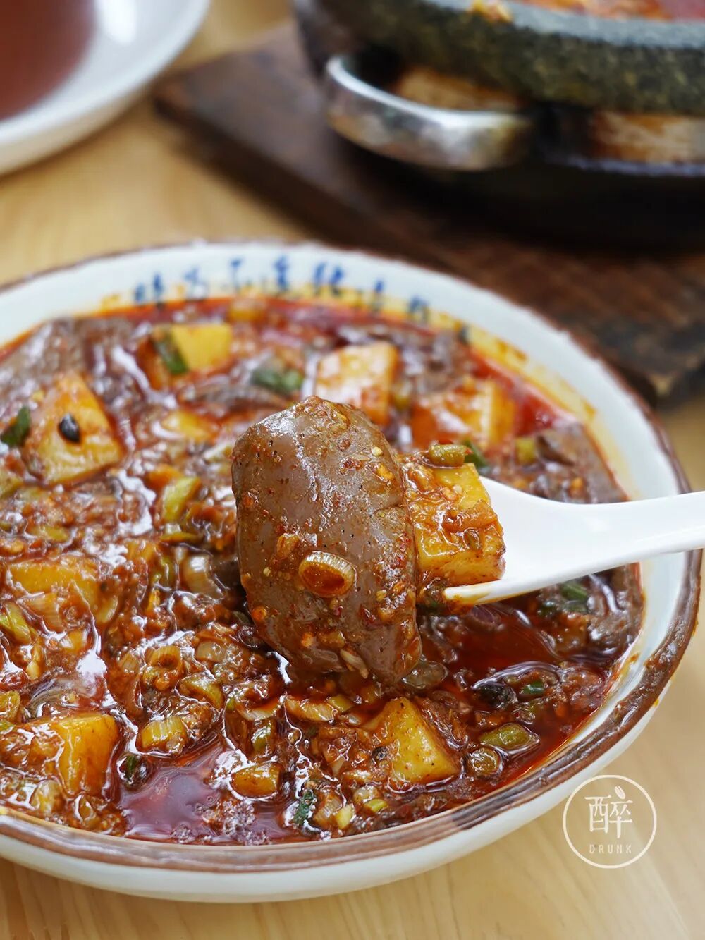 这家馆子的招牌,就叫「三烘」。烘凉粉、烘血旺、烘豆腐。