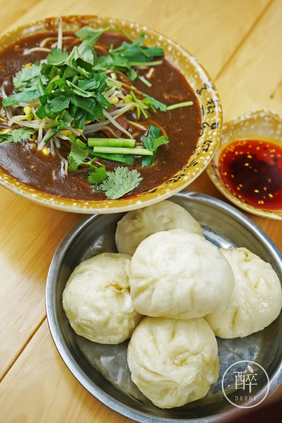 几乎每桌都是吃阆中牛肉面的客人,标配都是一大碗面+几个包子。