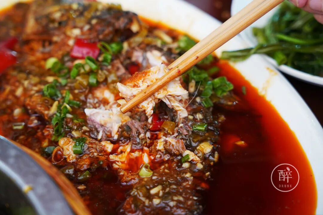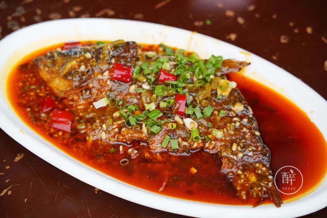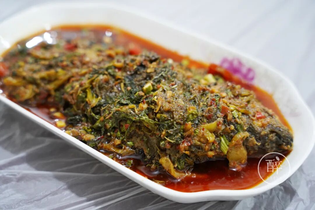 半边鱼属于红油家常做法,里头放了泡青菜,很好的去了腥提了味。