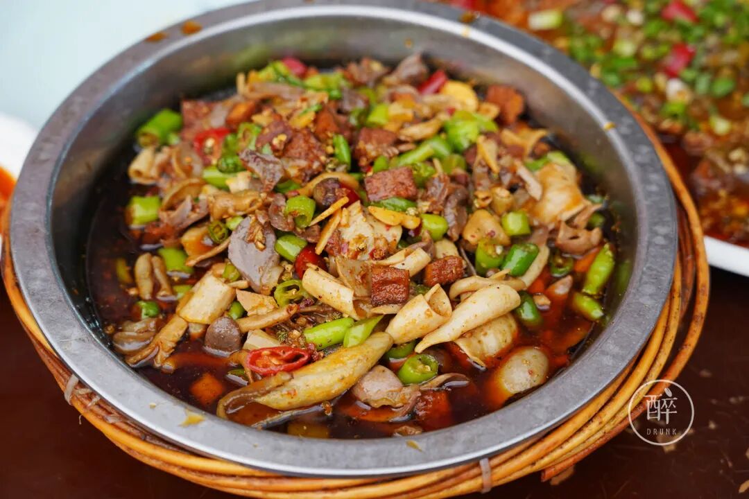 鸡鸭杂=鸡杂+鸭杂+豆干,有点像干锅,但比干锅要油一些。