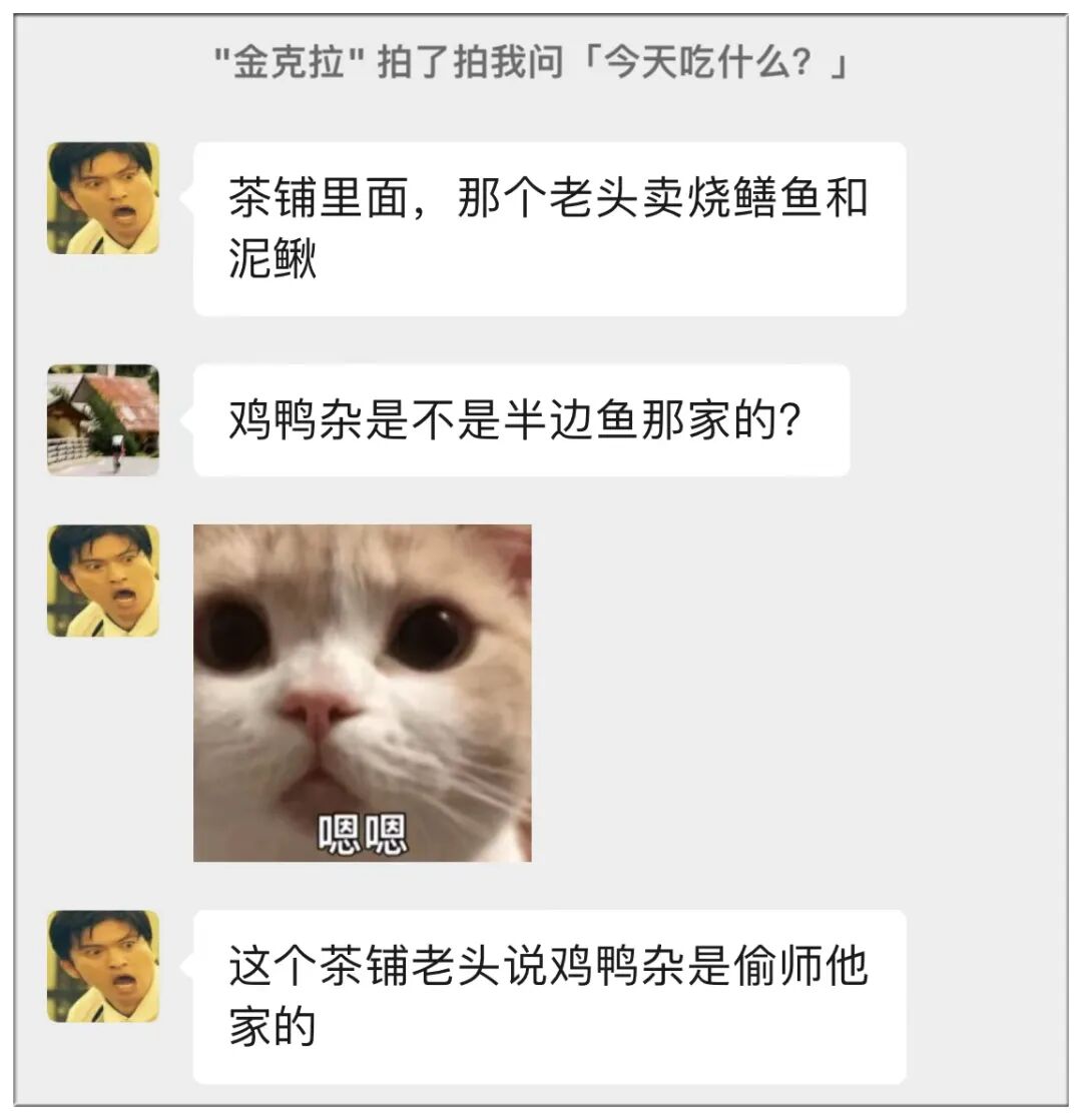 我在鸡鸭杂问起茶铺泥鳅,先说「没的」,再说「早关了」……前面金老师也说泥鳅厨师说鸡鸭杂偷师他……
