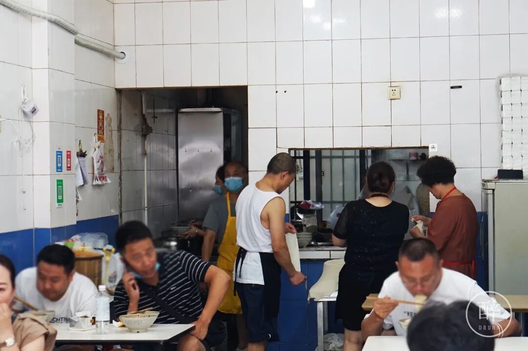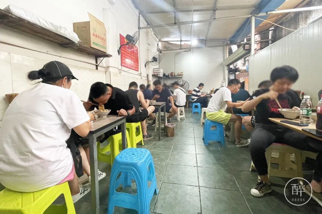 不起眼的一小个铺子,穿过中间煮面的地方,里面还塔了一个比铺子还大的棚子,前后都没见到桌子空下来过。