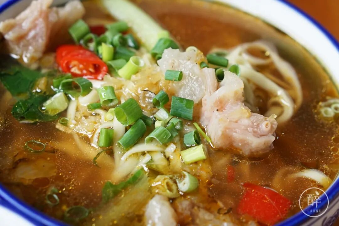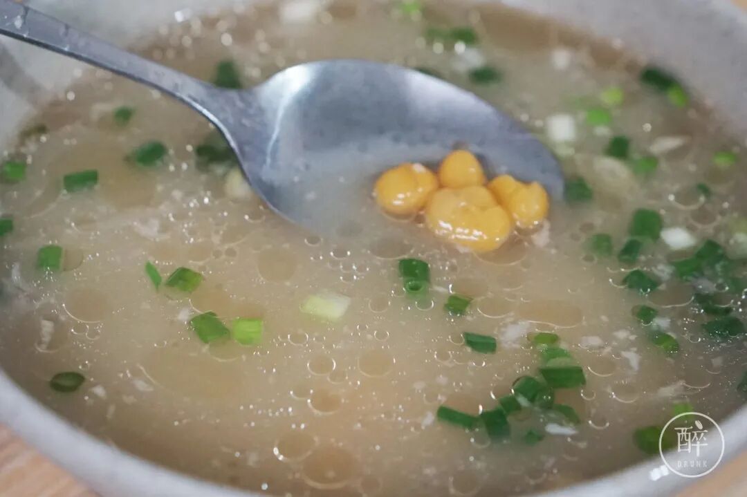 骨头汤+耙豌豆+一丢丢杂酱,鲜味全在汤底里头。