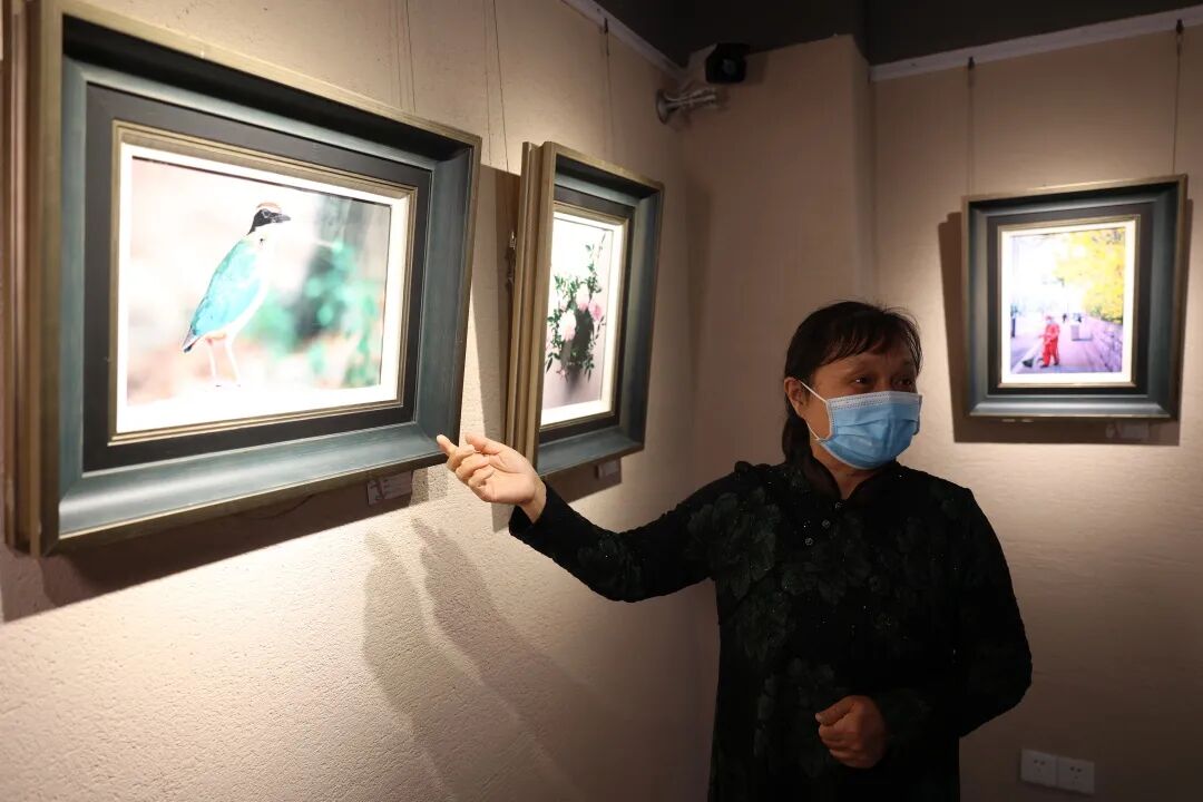 在接受我们的采访时,自然保护协会主办的“踏莎行”摄影展正在中校区现代艺术中心举行。自然保护协会的指导老师黄丽华老师也来到了现场,并向参观者介绍了一幅关于一种每年夏天都会来大蜀山繁殖后代的鸟类——八色鸫的作品。