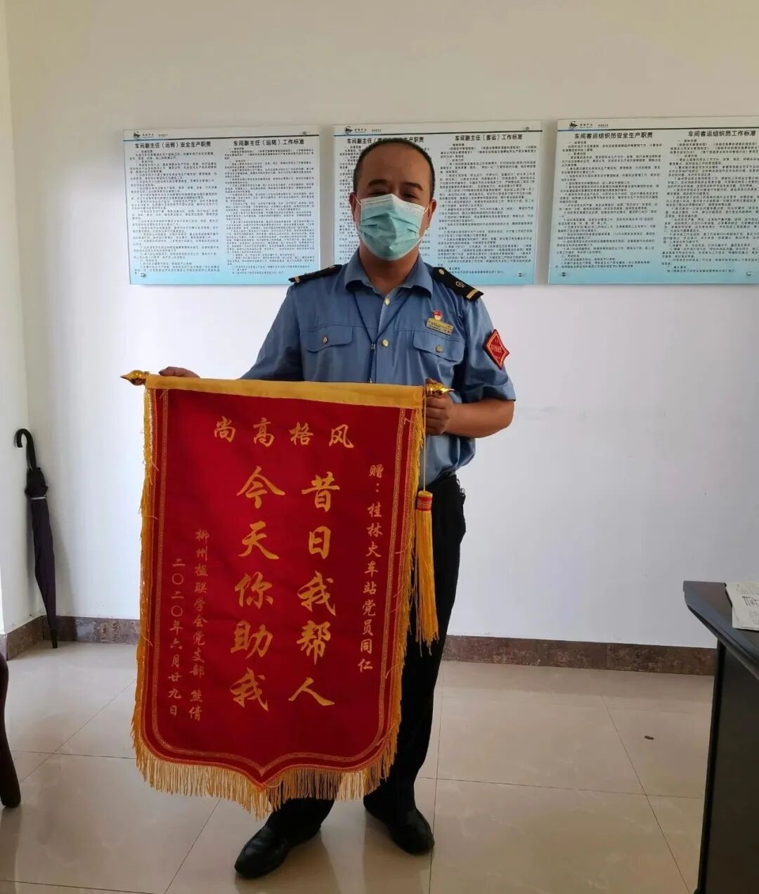 30日一大早,在朋友的陪同下,熊女士再次来到车站,“我昨天已经来过了,工作人员告诉我他们今天当班,我一定要亲手将锦旗送到他们手上。”