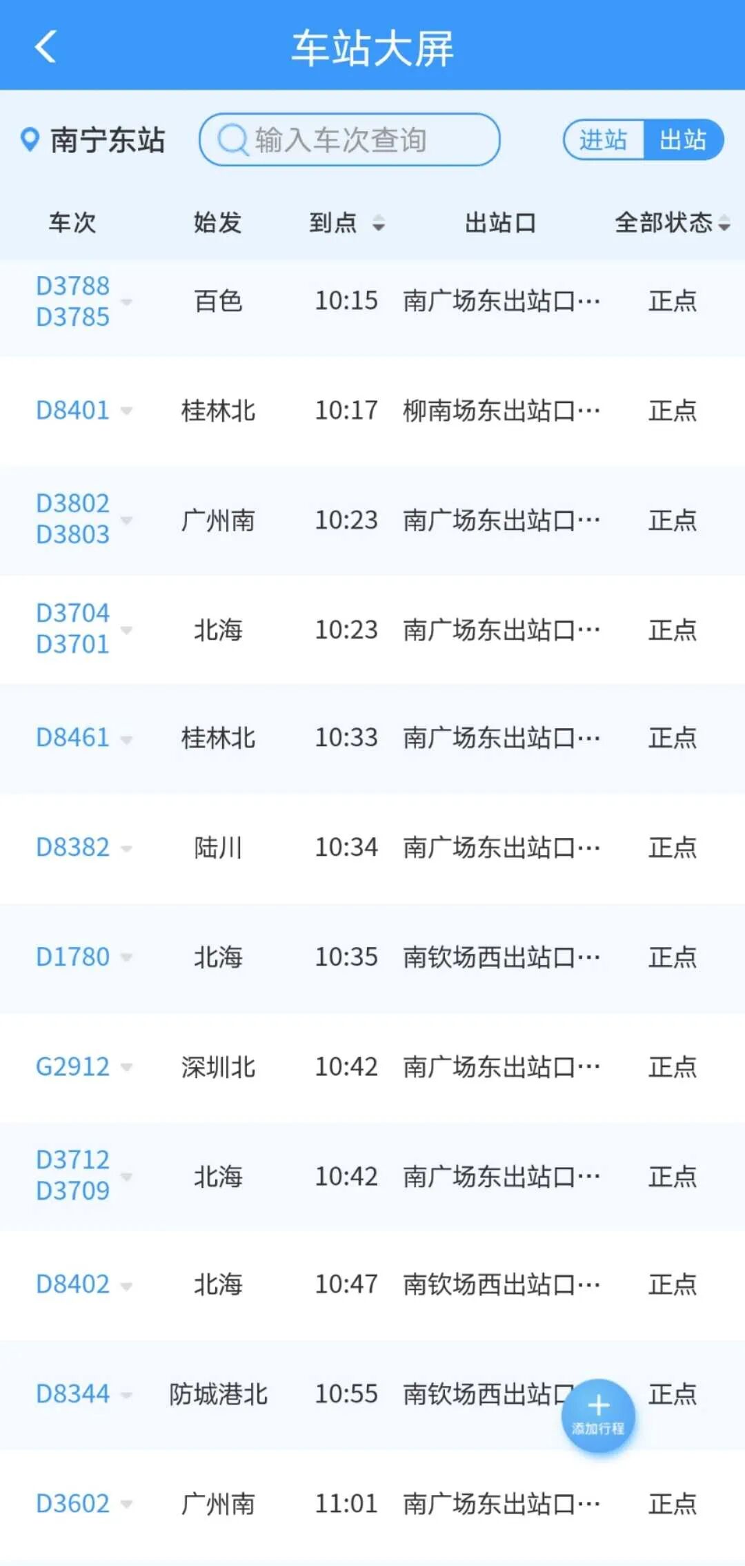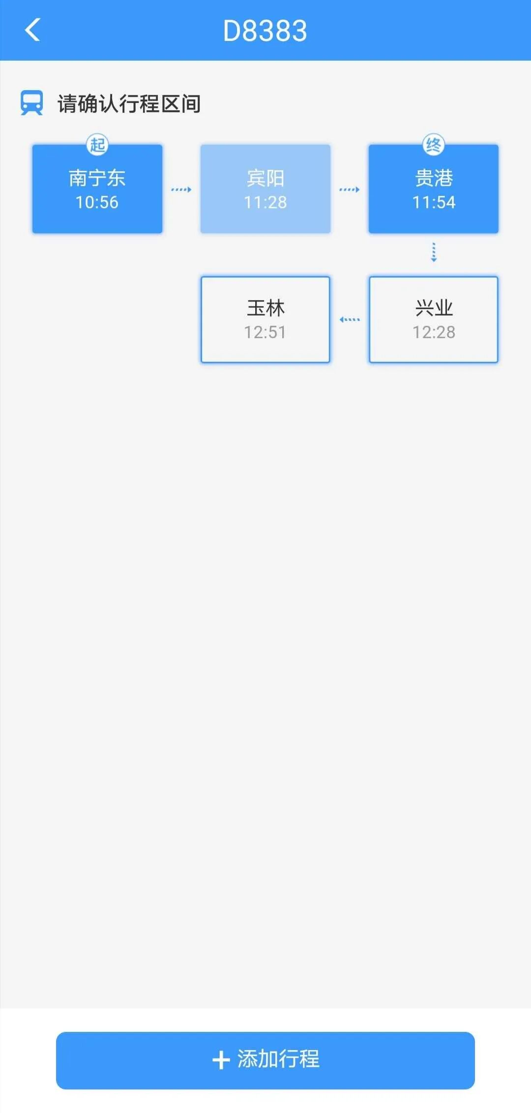 如果找到自己乘坐的车次,可以长按车次栏或者点击圆形图标即可添加行程。