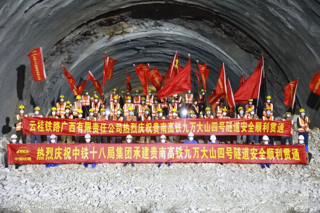 隧道挖掘过程中,还发现大小溶洞溶腔179处,平均每掘进86米就遇到一处,突泥突水情况时常发生。针对施工遇到的困难,云桂铁路广西公司组织参建单位中铁十八局优化施工方案,强化超前地质预报和监控量测,按照“弱爆破、短进尺、强支护、勤测量”的原则,对隧道掘进过程中裸露出来的岩石及时加固,安装钢拱架,每挖通1米就立即用混凝土浇筑,保障隧道施工安全。![]()
