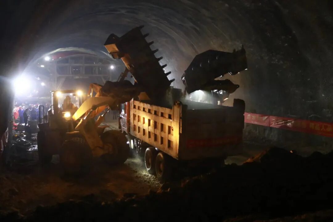 隧道出口是罕见的“炭质页岩缓倾地层”,这种页岩含炭化有机质,薄薄的一层层像书页一样垒叠,并且有一定倾斜度,受扰动后会整层溜动,很容易塌方。常见的爆破式开挖掘进对岩层扰动很大,只能用传统的凿岩机、挖掘机一斗斗掏、一寸寸挖,每天掘进进度只有45厘米左右。在682米的炭质页岩缓倾地层路段,挖掘建设耗时整整22个月。