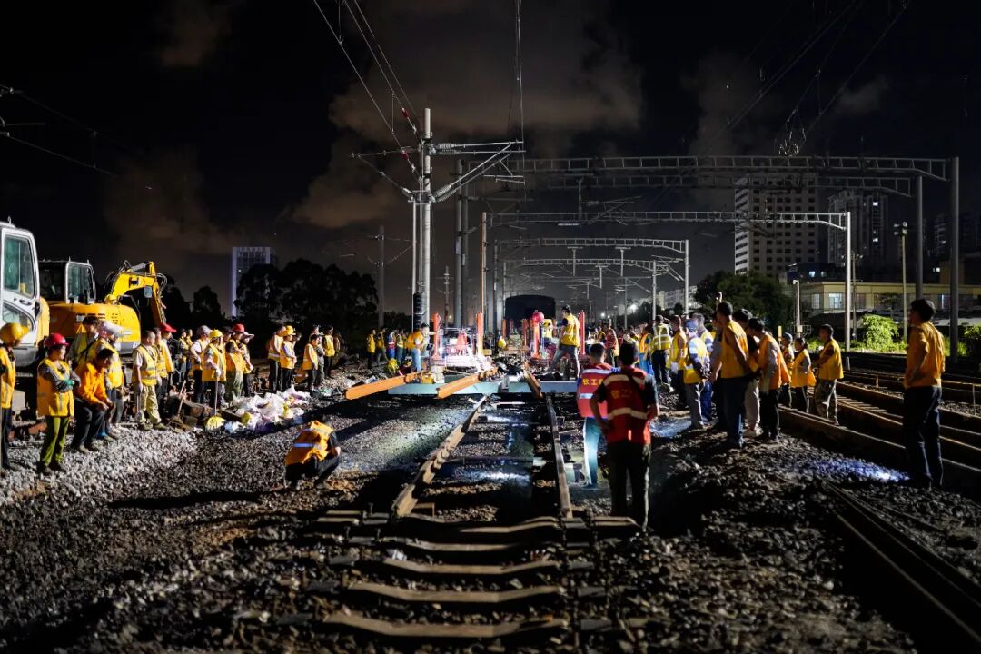 为保证施工按时、按质完成,广西沿海铁路公司密切关注天气变化,预判降雨路径和覆盖区域,提前做好施工期间的安全布控,克服恶劣天气对施工造成的影响;优化施工方案,采用多单位集中作业、相互配合的大天窗模式,提高施工效率,减少施工对铁路运输的干扰。