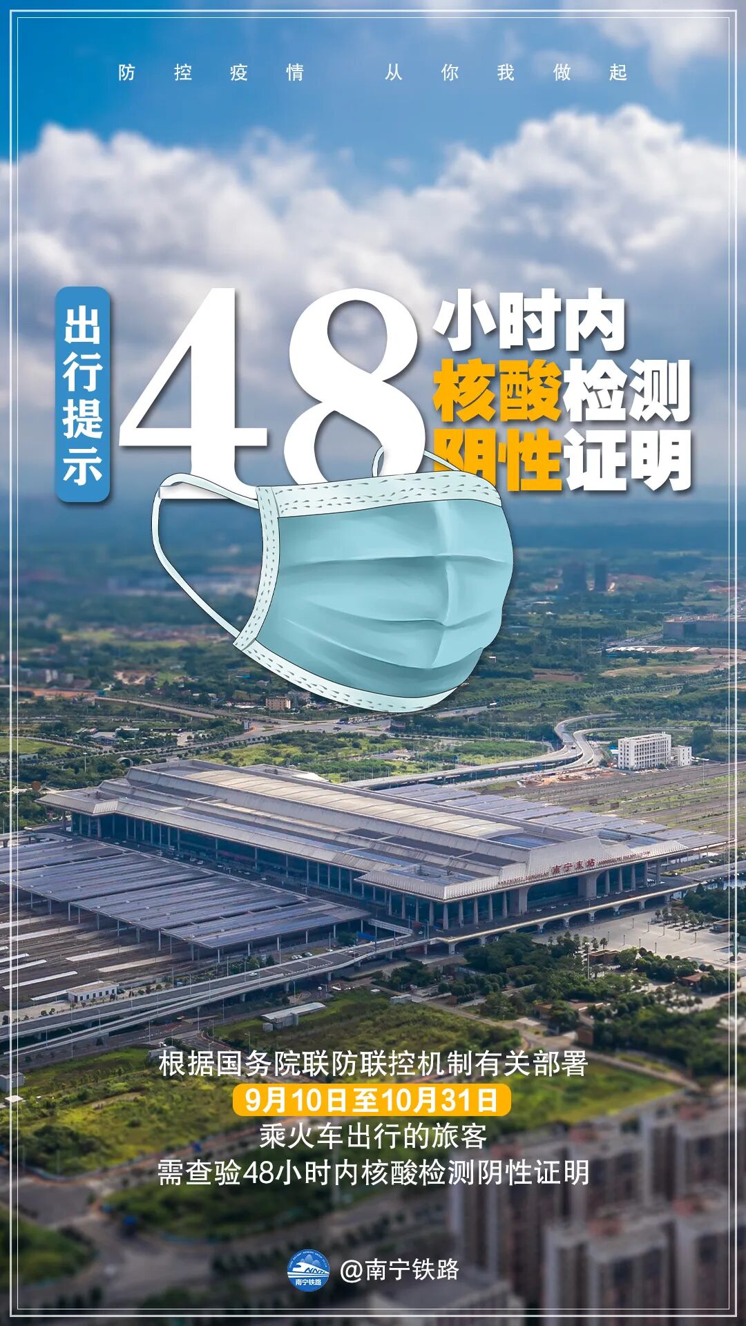 乘火车出行的旅客请提前安排核酸检测,进站时需查验48小时内核酸检测阴性证明,确保出行顺畅。