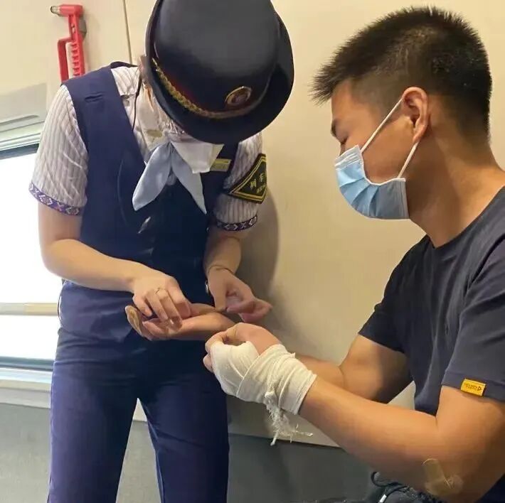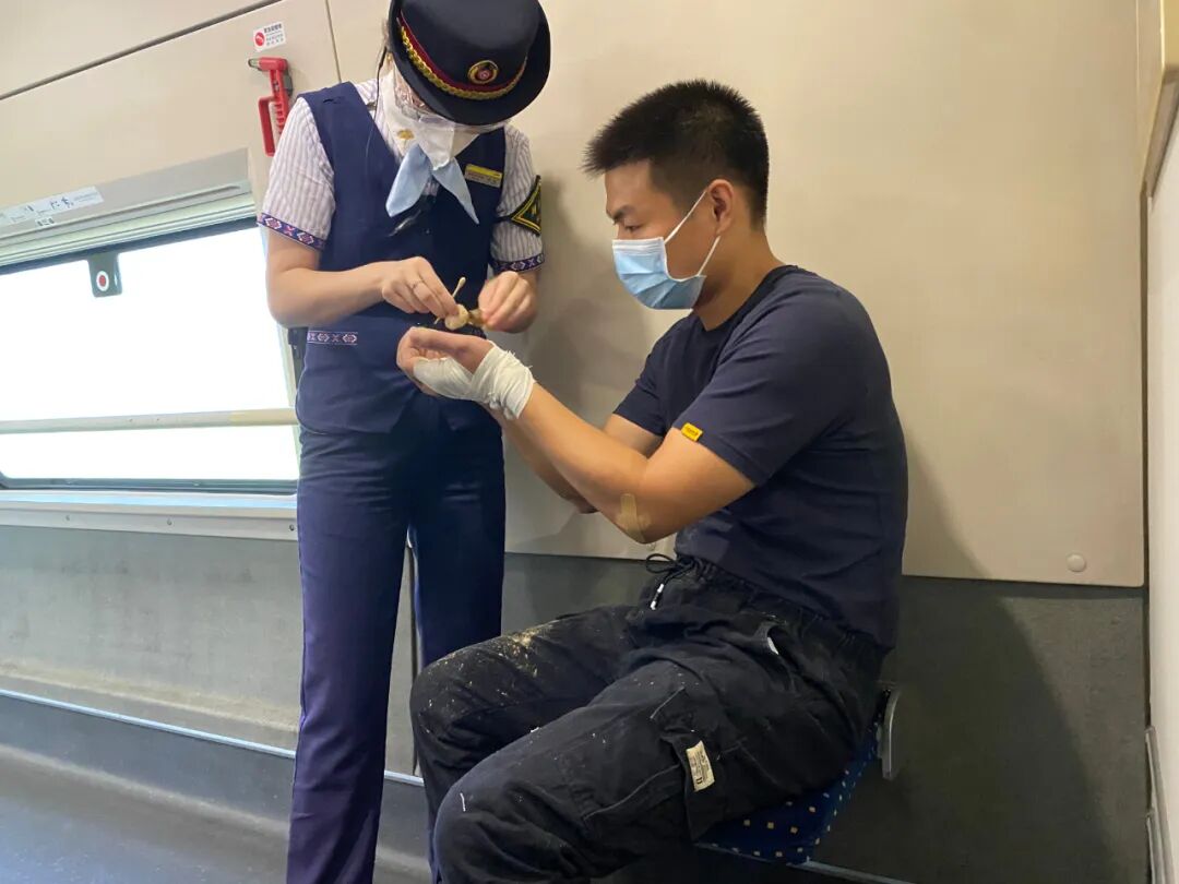 她赶到后,看见一位旅客手臂和腿部多处擦伤,血迹斑斑。