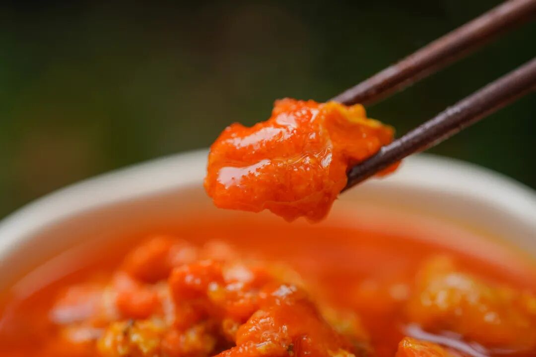 挑挑拆拆算下来,足 24 斤清水活蟹才能拆出 1 盒秃黄油,十分难得。