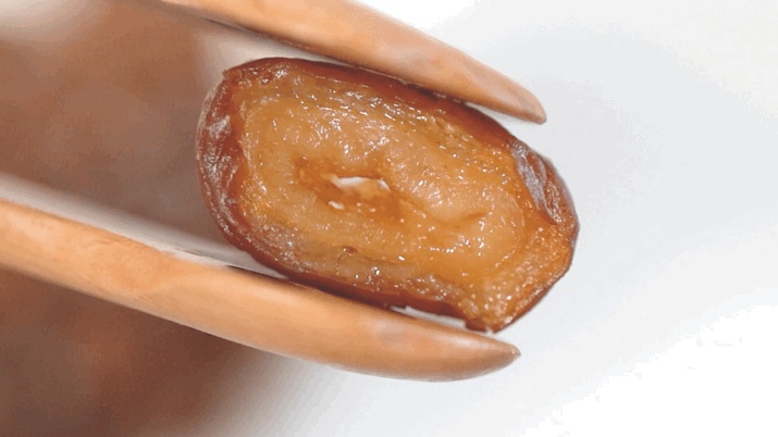 一枚会流沙的豆沙松子,皮儿又薄又弹,豆沙细腻松子香喷喷,一口流心: