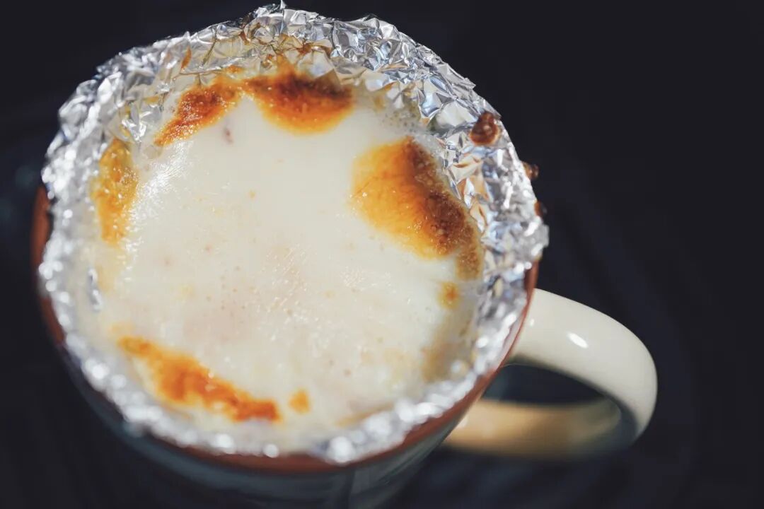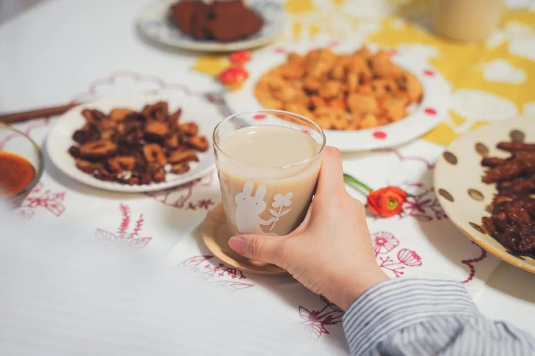 1、空气炸锅使用参考:空气炸锅里先铺锡纸,包浆豆腐平铺在烤篮里,表面喷点油,180度,两面各烤 4 分钟,表面膨起来就OK。隔离在家,最馋最馋的其实是奶茶。没想到空气炸锅做出来的,比直接茶汤兑牛奶好喝不少。特别是结出来的奶皮,有种炼乳和牛乳混合后的强烈奶香:焦糖味就和店里做出来是一样的,茶叶也因为被高温烘烤过,茶香更浓: