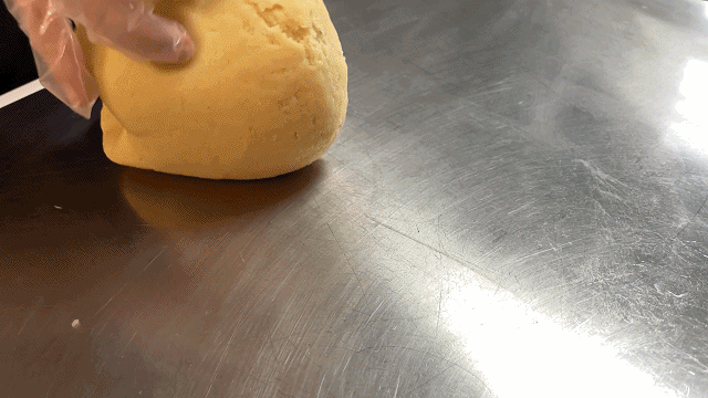 随后加入十来种配料,上好的安佳黄油和云南当地的蜂蜜等。反复搅拌,再人工手揉上劲。![]()