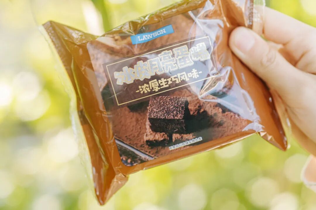 不得不说,这个季节真的急需多巴胺!最近巧克力季,罗森的甜品线依然开挂。点睛之笔是巧克力脆珠,软乎的奶油中爆开爽脆口感,像是迷你麦丽素。看啊,巧克力的质地很棒~用勺子撩起来很细腻,抿在嘴里就是丝滑两个字。底下是巧克力味的蛋糕胚,降低了整体的甜度,这样一人食也不腻。冰皮月亮蛋糕,浓厚生巧风味,里面真的藏着一块生巧耶。