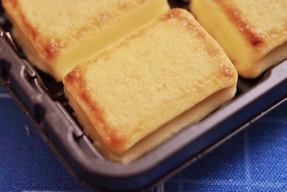 芯子是柔软的奶油芝士+卡芒贝尔+马斯卡彭三种芝士,奶香回味后一点点海盐咸香,不甜腻。喜欢芝士蛋糕但又怕胖的女生,吃一块小方就能享受美味啦