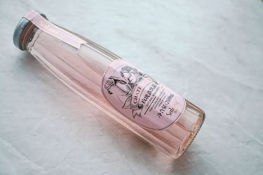 第一眼看到瓶子,就被吸引了。棱角分明的玻璃瓶,淡粉色的玫瑰花露,少女心砰砰跳。