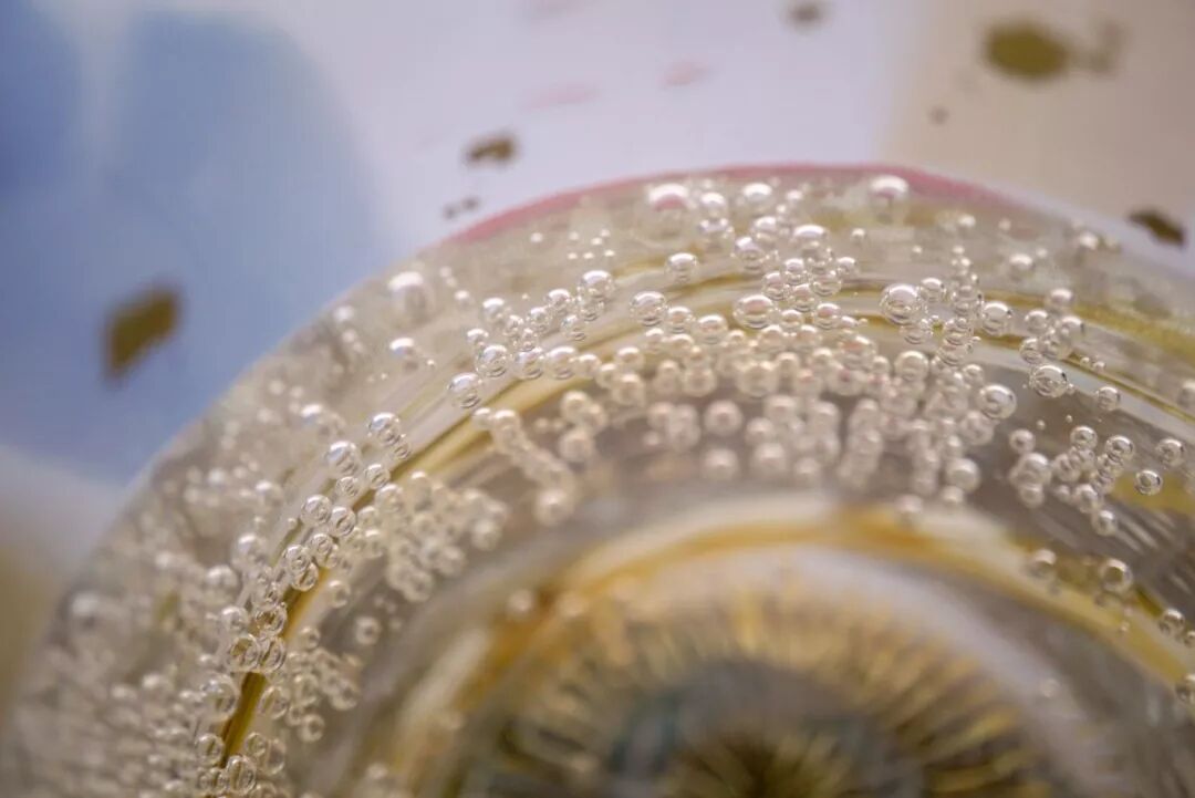 深吸一口气,可以闻到混合着葡萄、玫瑰和荔枝的甜香,复杂丰盈令人愉悦,喝起来有着清新的酸味,气泡小而密,在舌头上轻轻炸开,酥酥麻麻的。
