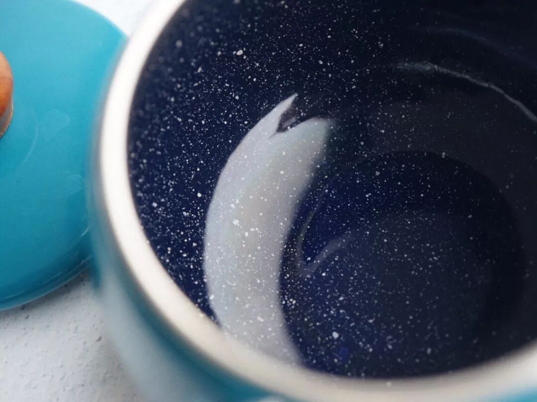 其实它颜值的精髓在于打开以后:深蓝色釉白色雪花星星点点,好像藏着一个浩瀚宇宙。作为一个星空爱好者,一下子就被击中了。