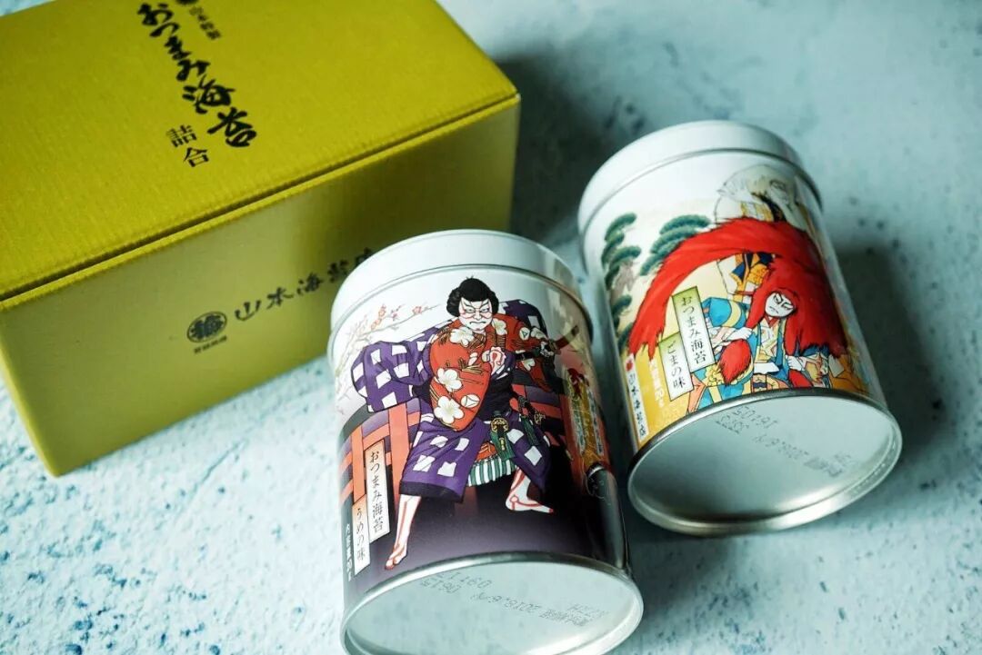 海苔罐子上有歌舞伎的图画,很适合送给喜欢歌舞伎的朋友。