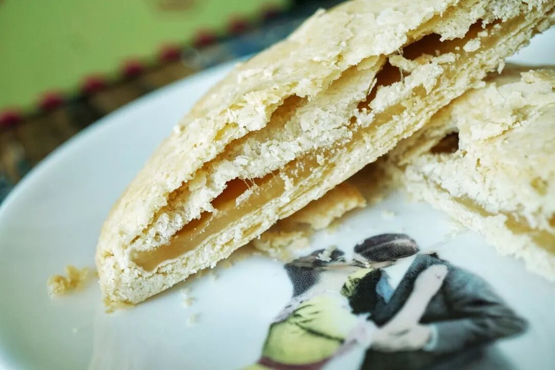 会买他家的太阳饼,饼皮有股浓烈的奶香味,馅很湿润,微甜不腻,咬下去先是簌簌落地的酥皮,然后是中间一层厚度恰到好处的软韧的馅,韧韧糯糯的很喜欢。