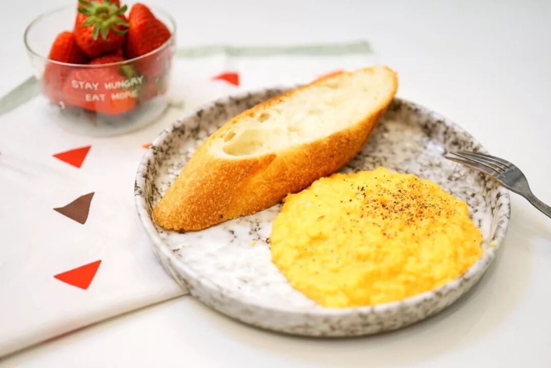 把蛋搅碎,配着脆脆的面包一起吃什么的,最喜欢了!