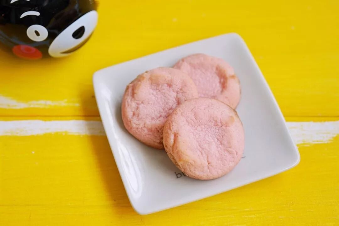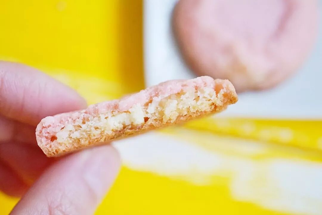 迷你甜点,外层刷了软萌的樱花酱,里面是散发着黄油香的软曲奇,有碎碎的白巧颗粒,心情不好的时候来一块,顿时像看到樱花盛开一样充满幸福感。