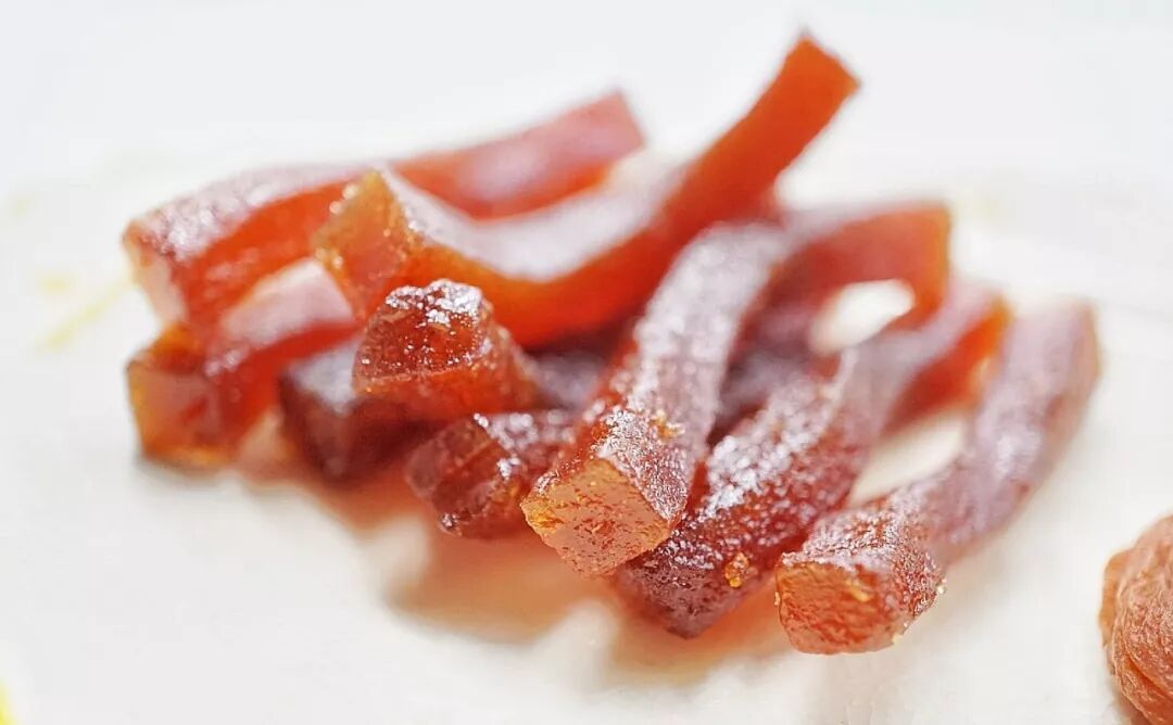 山楂制作后切条,咬一口,糯糯软软。但是不过软,带有嚼劲!