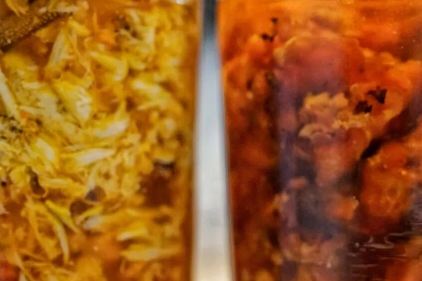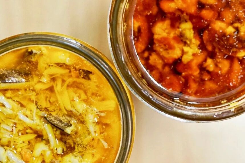 油封,就是油要没过蟹黄。注意罐子要提前消毒:热水煮 5 分钟,擦干。