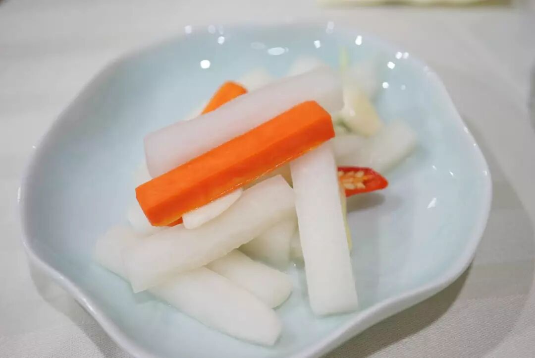 噢还有师傅自制的腌白萝卜,小酸小甜小辣,有冬天萝卜的脆甜多汁,但没有萝卜辣:
