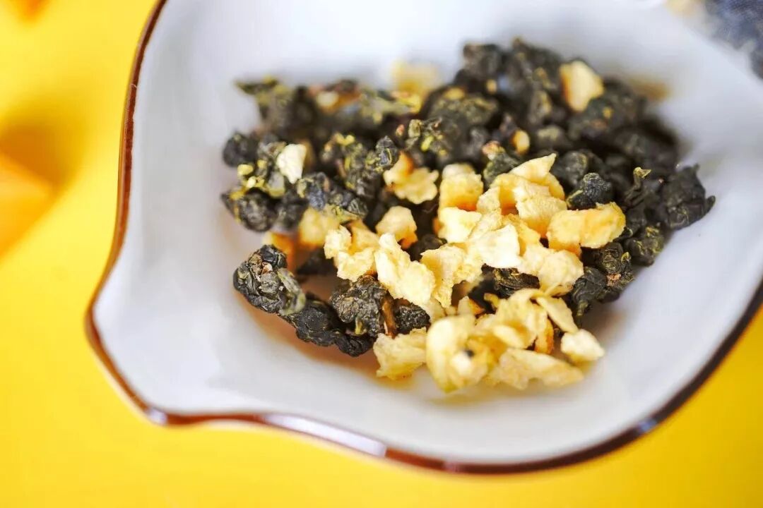制成的黄桃冻干颗颗鲜明,滋味浓郁。搭配的茶叶则是台湾名茶代表之一的冻顶乌龙。