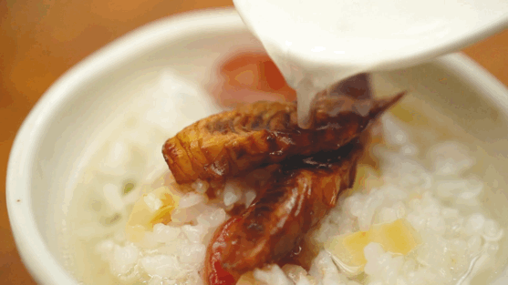 再浇一勺腌笃鲜汤,把每一粒米沁,满独有的鲜味: