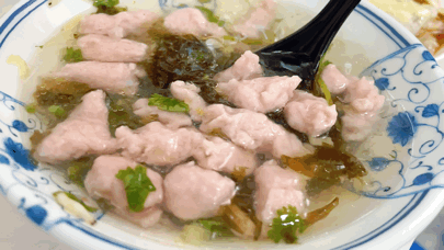 点了一份福鼎肉片汤,汤底是紫菜虾皮芹菜香菜,舀一勺,幽幽香菜味扑鼻。