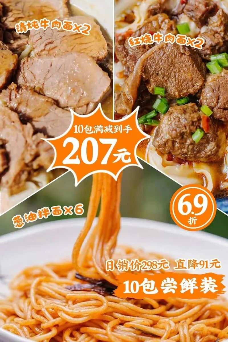 面劲道葱油有料调味够足,很优秀比市售高出一大截。「10盒尝鲜装」满减到手价💰94.8元十盒,低至6.2折!!单盒平均只要9.48元。一年一次 最后8小时