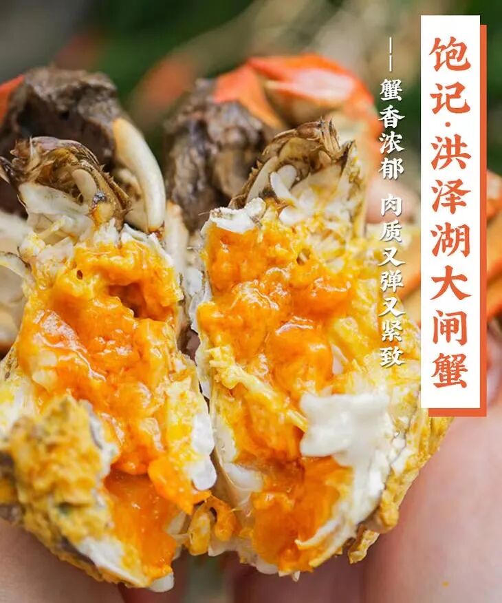 「饱记精选 · 洪泽湖大闸蟹」现在下单顺丰快递,泡沫箱+冰袋发出。共有 5 种规格,其中最推荐的是热销的三两半规格,足够大很有排面