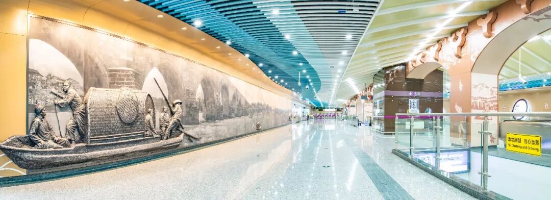这些公共艺术系列作品,主要围绕“传承巴蜀文明、发展天府文化”理念,借鉴古典文化艺术元素,利用现代工艺技术表现、传播巴蜀传统文化,展现新时代蜀地社会发展风貌,并与地铁车站整体空间环境相互呼应、相映成趣,营造出极具文化氛围、艺术美感的公共空间,展示成都这座城市高度的艺术和审美品位,成为成都市极具代表性的地下艺术走廊。