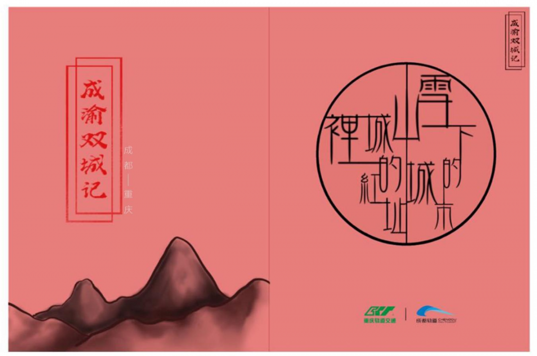 以成都轨道交通为主的票卡结合太阳神鸟、双子塔等标志性元素,以重庆轨道交通为主的票卡结合解放碑、洪崖洞等地标建筑,两张卡拼合在一起形成一张相互贯通的整体画面,穿梭于城市之间的列车表明了轨道交通引领城市发展的重要作用。
