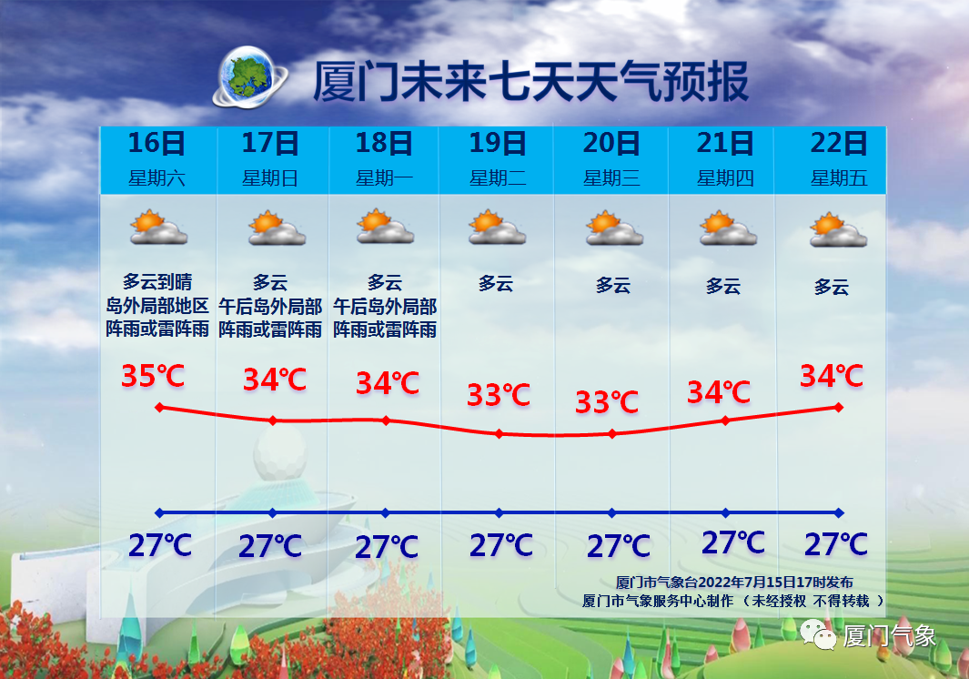 厦门以多云到晴天气为主