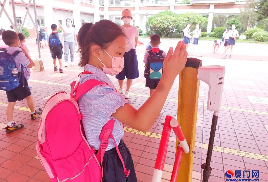 学生测温后入校