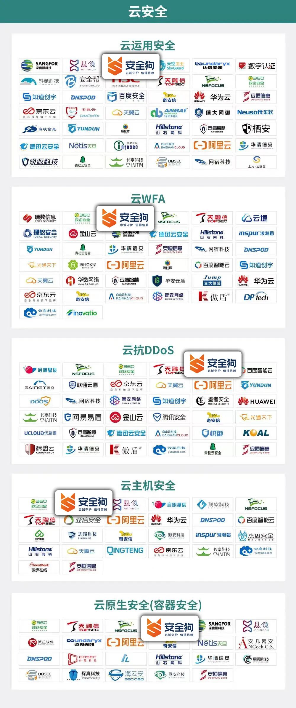 作为国内云安全CWPP领导厂商,安全狗也凭借综合且全面的产品和能力入选多个领域。